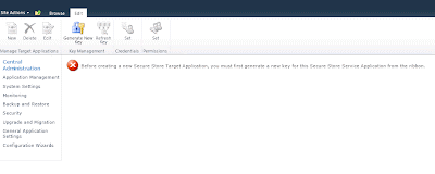 Go to your Service applications, click on “Secure store service”: